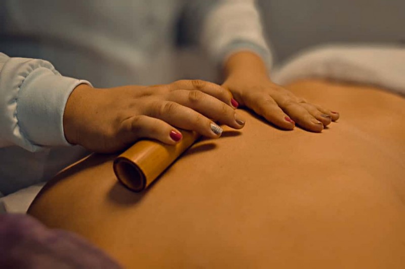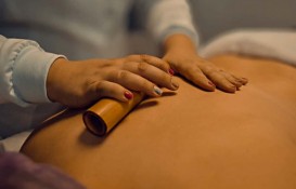BAMBUTERAPIA  A bambuterapia é uma técnica de massagem em que são utilizadas hastes de bambu (de diferentes tamanhos e espessuras) que se “encaixam” de acordo com a região do corpo em que são aplicadas, podendo gerar benefícios estéticos (como diminuição da celulite) e/ou terapêuticos (como relaxamento). As hastes de bambu podem ser aplicadas no rosto (para drenagem linfática e massofilaxia facial) e em todo o corpo (modeladora, relaxante, terapêutica, shiatsu, drenagem linfática).